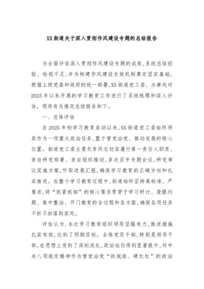 / 【七哥公文】2025年:XX街道关于深入贯彻作风建设专题的总结报告+更多免费公文+VX:QiGeGongWen2024