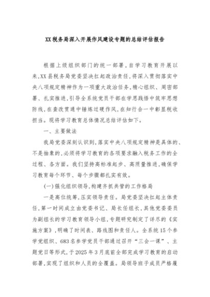 / 【七哥公文】2025年:XX税务局深入开展作风建设专题的总结评估报告+更多免费公文+VX:QiGeGongWen2024