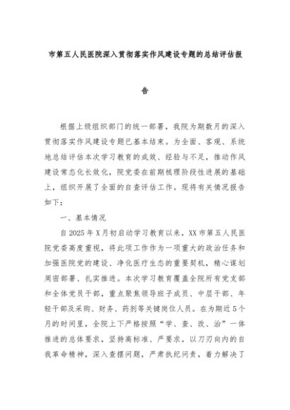 【七哥公文】2025年:市第五人民医院深入贯彻落实作风建设专题的总结评估报告+更多免费公文+VX:QiGeGongWen2024