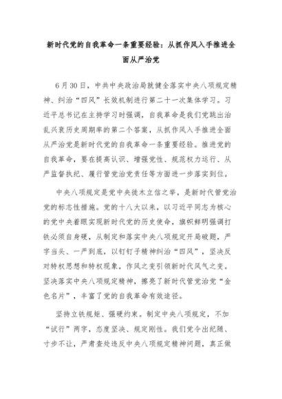 【七哥公文】2025年:新时代党的自我革命一条重要经验:从抓作风入手推进全面从严治党+更多免费公文+VX:QiGeGongWen2024