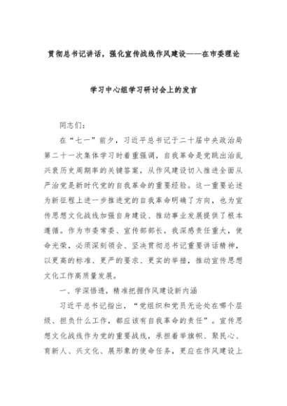 【七哥公文】2025年:贯彻总书记讲话,强化宣传战线作风建设——在市委理论学习中心组学习研讨会上的发言+更多免费公文+VX:QiGeGongWen2024