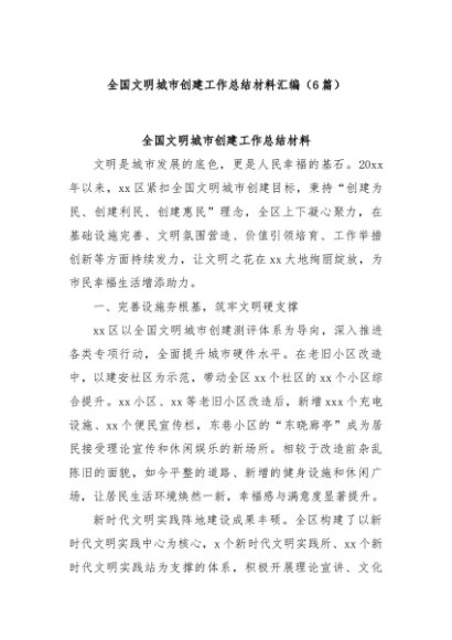 / 【七哥公文】2025年:(6篇)全国文明城市创建工作总结材料汇编+更多免费公文+VX:QiGeGongWen2024