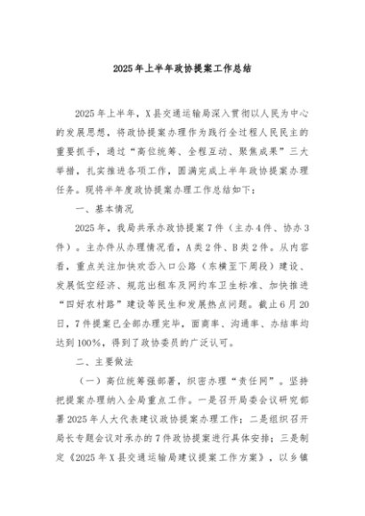 / 【七哥公文】2025年:2025年上半年政协提案工作总结+更多免费公文+VX:QiGeGongWen2024