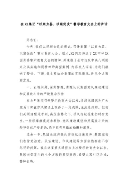 【七哥公文】2025年:在XX集团“以案为鉴、以案促改”警示教育大会上的讲话+更多免费公文+VX:QiGeGongWen2024