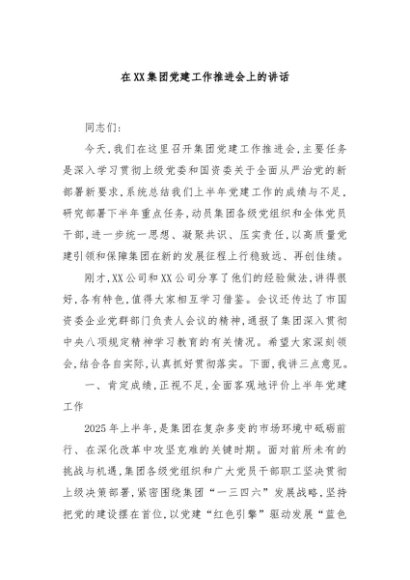 / 【七哥公文】2025年:在XX集团党建工作推进会上的讲话+更多免费公文+VX:QiGeGongWen2024