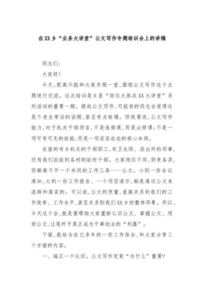 / 【七哥公文】2025年:在XX乡“业务大讲堂”公文写作专题培训会上的讲稿+更多免费公文+VX:QiGeGongWen2024
