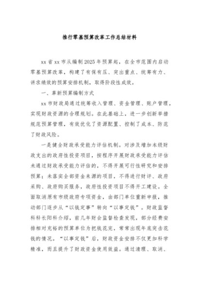 / 【七哥公文】2025年:推行零基预算改革工作总结材料+更多免费公文+VX:QiGeGongWen2024