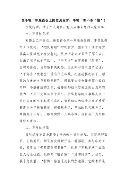【七哥公文】2025年:在年轻干部座谈会上的交流发言:年轻干部不要“怕”!+更多免费公文+VX:QiGeGongWen2024