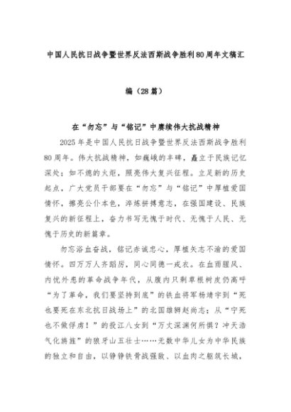 【七哥公文】2025年:(28篇)中国人民抗日战争暨世界反法西斯战争胜利80周年文稿汇编+更多免费公文+VX:QiGeGongWen2024