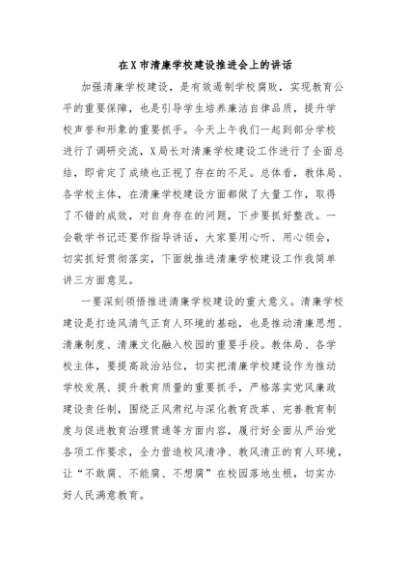 / 【七哥公文】2025年:在X市清廉学校建设推进会上的讲话+更多免费公文+VX:QiGeGongWen2024