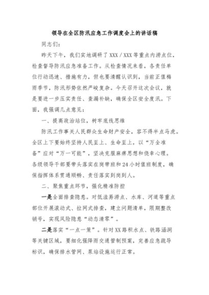 / 【七哥公文】2025年:领导在全区防汛应急工作调度会上的讲话稿+更多免费公文+VX:QiGeGongWen2024