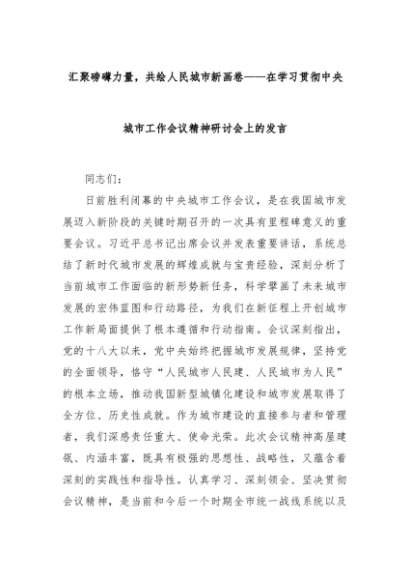 【七哥公文】2025年:汇聚磅礴力量,共绘人民城市新画卷——在学习贯彻中央城市工作会议精神研讨会上的发言+更多免费公文+VX:QiGeGongWen2024