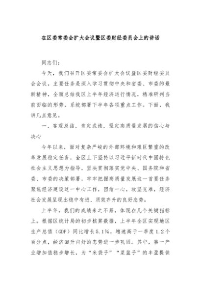 / 【七哥公文】2025年:在区委常委会扩大会议暨区委财经委员会上的讲话+更多免费公文+VX:QiGeGongWen2024