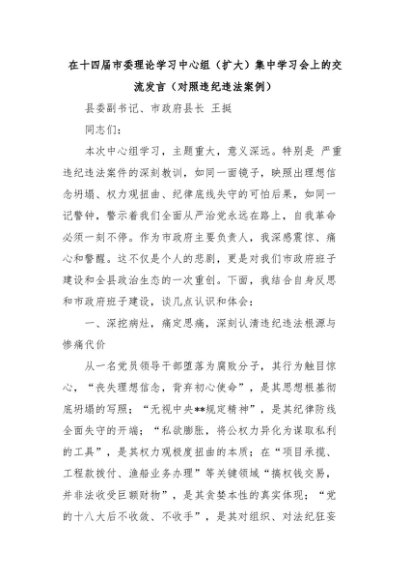 【七哥公文】2025年:在十四届市委理论学习中心组(扩大)集中学习会上的交流发言(对照违纪违法案例)+更多免费公文+VX:QiGeGongWen2024