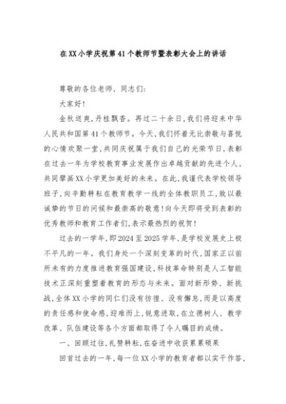 / 【七哥公文】2025年:在XX小学庆祝第41个教师节暨表彰大会上的讲话+更多免费公文+VX:QiGeGongWen2024