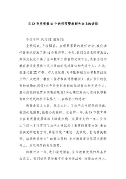 / 【七哥公文】2025年:在XX市庆祝第41个教师节暨表彰大会上的讲话+更多免费公文+VX:QiGeGongWen2024