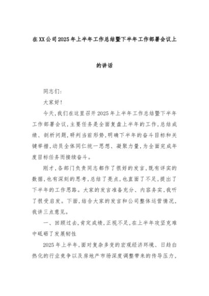 【七哥公文】2025年:在XX公司2025年上半年工作总结暨下半年工作部署会议上的讲话+更多免费公文+VX:QiGeGongWen2024