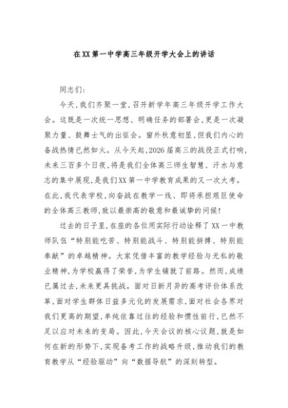 / 【七哥公文】2025年:在XX第一中学高三年级开学大会上的讲话+更多免费公文+VX:QiGeGongWen2024