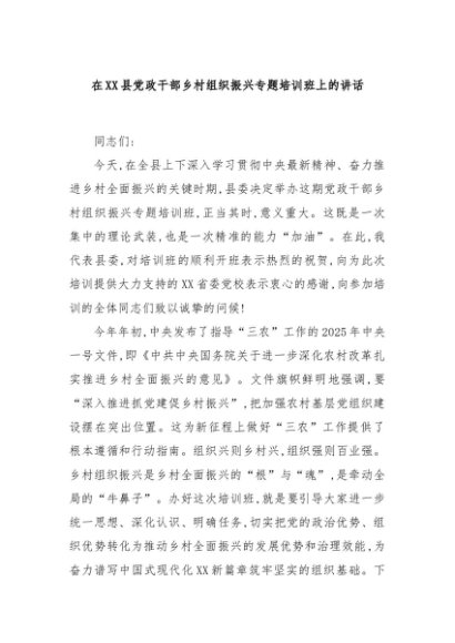 / 【七哥公文】2025年:在XX县党政干部乡村组织振兴专题培训班上的讲话+更多免费公文+VX:QiGeGongWen2024