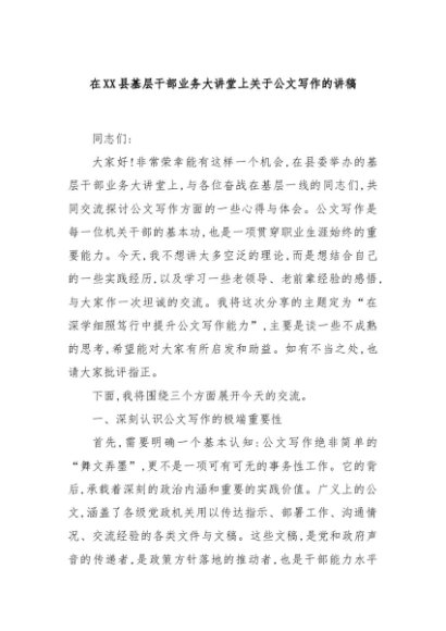 / 【七哥公文】2025年:在XX县基层干部业务大讲堂上关于公文写作的讲稿+更多免费公文+VX:QiGeGongWen2024