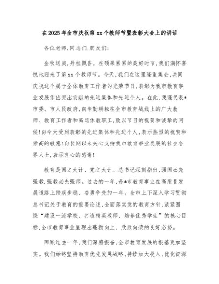 【七哥公文】2025年:在2025年全市庆祝第41个教师节暨表彰大会上的讲话+更多免费公文+VX:QiGeGongWen2024