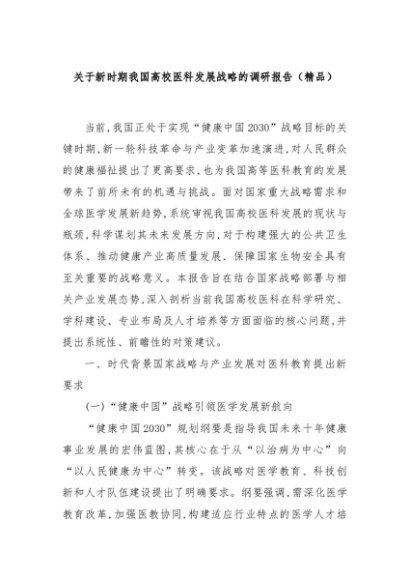 / 【七哥公文】2025年:关于新时期我国高校医科发展战略的调研报告(精品)+更多免费公文+VX:QiGeGongWen2024