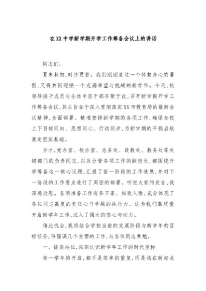 / 【七哥公文】2025年:在XX中学新学期开学工作筹备会议上的讲话+更多免费公文+VX:QiGeGongWen2024