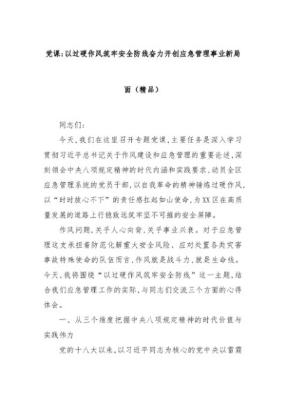【七哥公文】2025年:党课:以过硬作风筑牢安全防线奋力开创应急管理事业新局面(精品)+更多免费公文+VX:QiGeGongWen2024