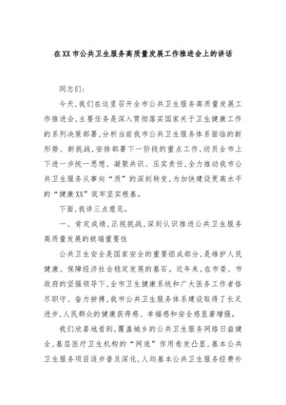 / 【七哥公文】2025年:在XX市公共卫生服务高质量发展工作推进会上的讲话+更多免费公文+VX:QiGeGongWen2024
