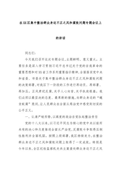 【七哥公文】2025年:在XX区集中整治群众身边不正之风和腐败问题专题会议上的讲话+更多免费公文+VX:QiGeGongWen2024