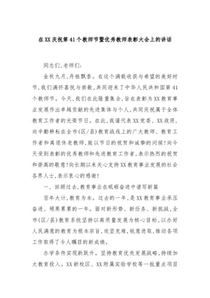 【七哥公文】2025年:在XX庆祝第41个教师节暨优秀教师表彰大会上的讲话+更多免费公文+VX:QiGeGongWen2024