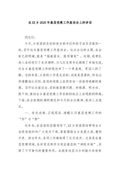 / 【七哥公文】2025年:在XX乡2025年基层党建工作座谈会上的讲话+更多免费公文+VX:QiGeGongWen2024