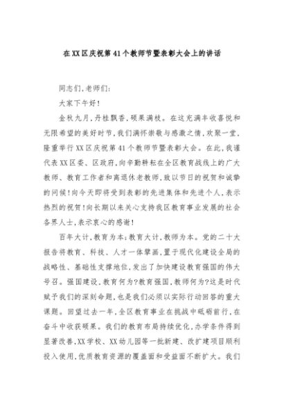/ 【七哥公文】2025年:在XX区庆祝第41个教师节暨表彰大会上的讲话+更多免费公文+VX:QiGeGongWen2024