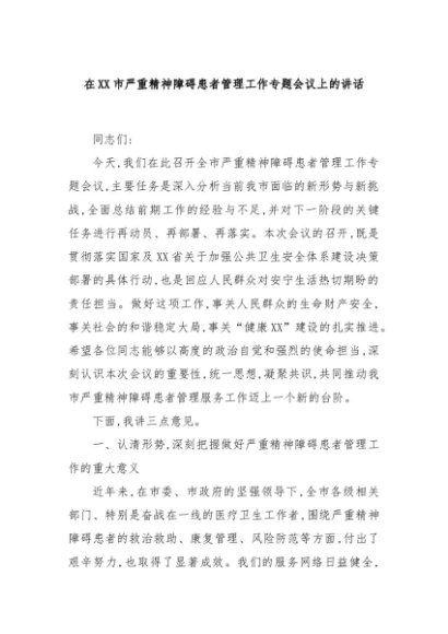 / 【七哥公文】2025年:在XX市严重精神障碍患者管理工作专题会议上的讲话+更多免费公文+VX:QiGeGongWen2024