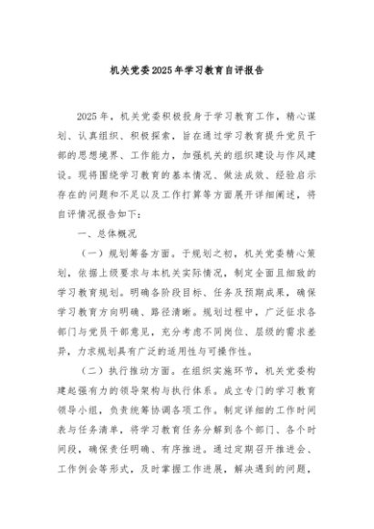 / 【七哥公文】2025年:机关党委2025年学习教育自评报告+更多免费公文+VX:QiGeGongWen2024