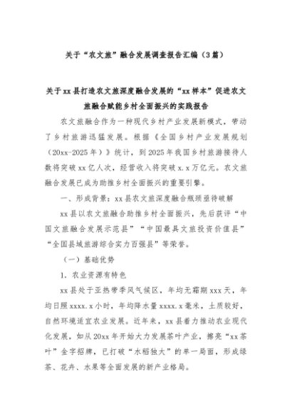 / 【七哥公文】2025年:(3篇)关于“农文旅”融合发展调查报告汇编+更多免费公文+VX:QiGeGongWen2024