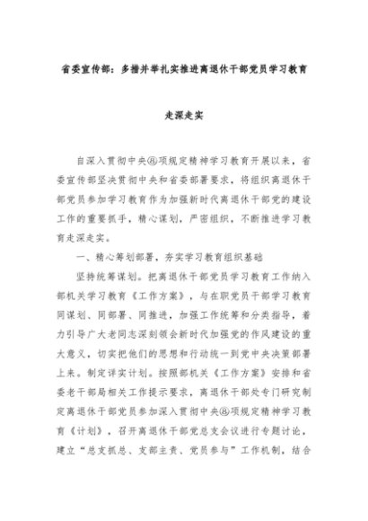【七哥公文】2025年:省委宣传部:多措并举扎实推进离退休干部党员学习教育走深走实+更多免费公文+VX:QiGeGongWen2024