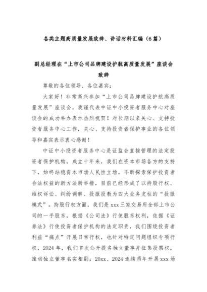 / 【七哥公文】2025年:(6篇)各类主题高质量发展致辞、讲话材料汇编+更多免费公文+VX:QiGeGongWen2024