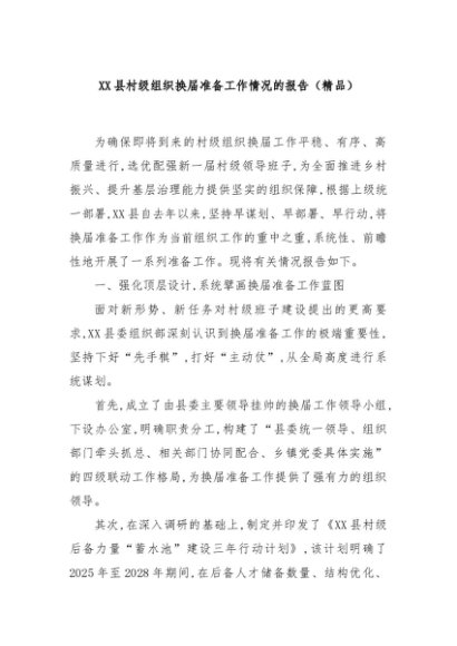 / 【七哥公文】2025年:XX县村级组织换届准备工作情况的报告(精品)+更多免费公文+VX:QiGeGongWen2024