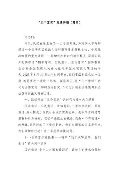 / 【七哥公文】2025年:“三个意识”党课讲稿(精品)+更多免费公文+VX:QiGeGongWen2024