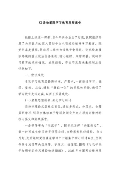 / 【七哥公文】2025年:XX县检察院学习教育总结报告+更多免费公文+VX:QiGeGongWen2024