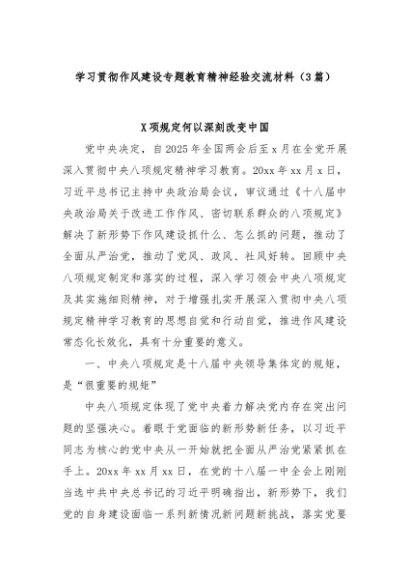 / 【七哥公文】2025年:(3篇)学习贯彻作风建设专题教育精神经验交流材料+更多免费公文+VX:QiGeGongWen2024