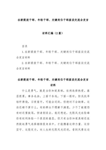 【七哥公文】2025年:(2篇)在新提拔干部、年轻干部、关键岗位干部座谈交流会发言材料汇编+更多免费公文+VX:QiGeGongWen2024