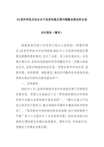【七哥公文】2025年:XX县科学技术协会关于县委巡察反馈问题整改情况的自查自纠报告(精品)+更多免费公文+VX:QiGeGongWen2024