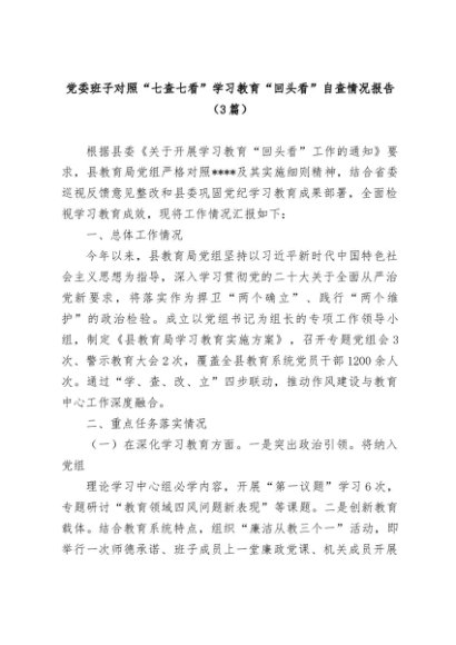 【七哥公文】2025年:(3篇)党委班子对照“七查七看”学习教育”回头看”自查情况报告+更多免费公文+VX:QiGeGongWen2024