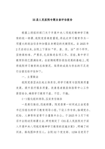 / 【七哥公文】2025年:XX县人民医院专题自查评估报告+更多免费公文+VX:QiGeGongWen2024