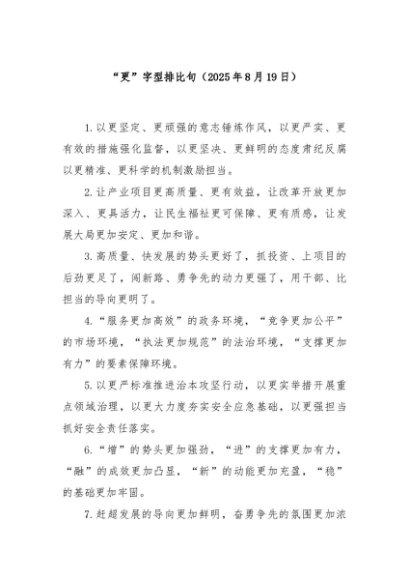 / 【七哥公文】2025年:“更”字型排比句(2025年8月19日)+更多免费公文+VX:QiGeGongWen2024