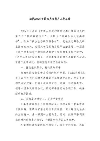 / 【七哥公文】2025年:法院2025年民法典宣传月工作总结+更多免费公文+VX:QiGeGongWen2024