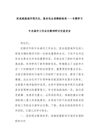 【七哥公文】2025年:财政赋能城市现代化,服务民生保障新格局——专题学习中央城市工作会议精神研讨交流发言+更多免费公文+VX:QiGeGongWen2024