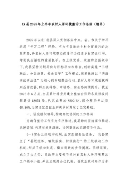 【七哥公文】2025年:XX县2025年上半年农村人居环境整治工作总结(精品)+更多免费公文+VX:QiGeGongWen2024
